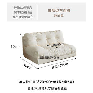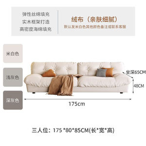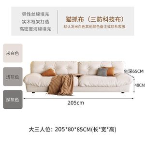 云朵沙发新款现代简约奶油风客厅小户型直排双三人位懒人布艺皮艺