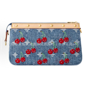 2025 新しいレディースバッグデニムデニム刺繍チェリー麻雀バッグポータブル脇の下バッグトレンディなショルダークロスボディバッグ