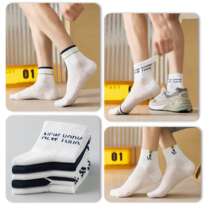 ティーンエイジャーソックスメンズボーイズ夏薄いメッシュ純綿消臭中学生スポーツソックスメンズソックス