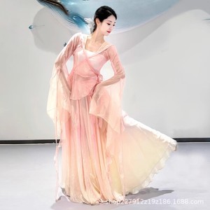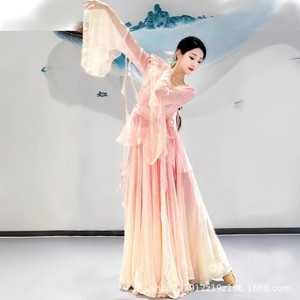 新しい古典的な練習服、春の賛歌、エレガントで妖精のような中国舞踊のグラデーションカラーのガーゼドレス、大きなスカートのパフォーマンス服スーツ