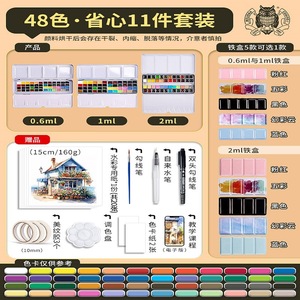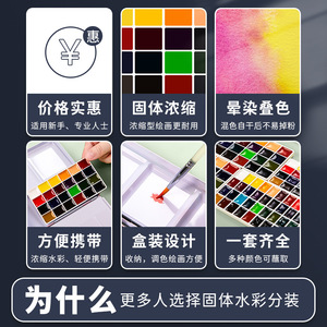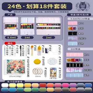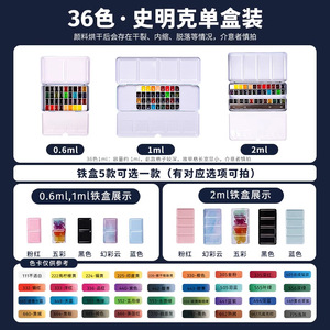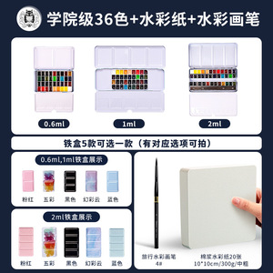 Schminck 固形水彩アカデミーレベル 24 色顔料入り鉄箱セット、スケッチ、ポータブル旅行用ペイントツール用