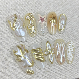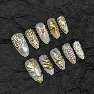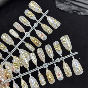 立体レリーフクラゲとヒトデヨーロッパとアメリカの国境を越えた新しいウェアラブルネイル 30 ピースフェイクネイルパッチホワイトヘビーデューティマニキュア