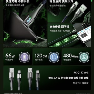 Remax インテリジェント電気亜鉛合金シェル、インジケーター付き、インテリジェント電源オフ、機械を傷つけない、100W 高速充電携帯電話データケーブル