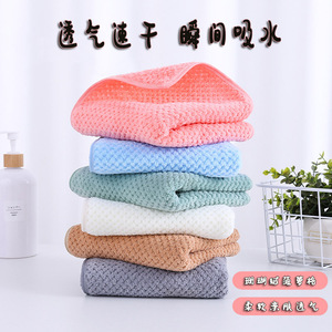 跨境批发新款珊瑚绒菠萝格柔软亲肤吸水速干毛巾浴巾套装洗脸洗澡