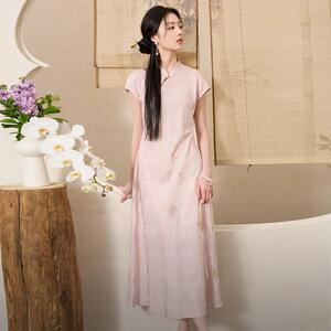 2025年夏新作、彩系、エレガントで着痩せ効果のある、新中式改良旗袍風ロングワンピース、女性用、中国風