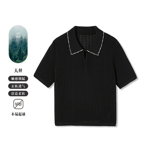 CRUSH 同風マルベリーシルクセーター レディース 2025 夏 ラペル ハンドビーズ 半袖 ボトムス フレンチトップ