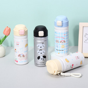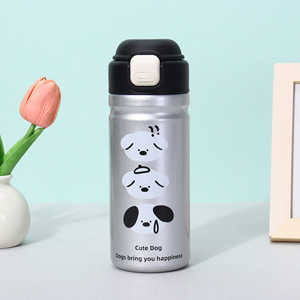 高颜值卡通弹跳保温杯304不锈钢便携提手双饮吸管水杯随手杯批发