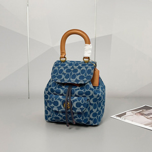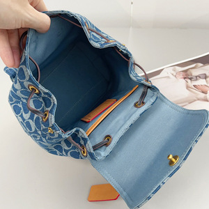 2025 新しいリヤバックパックシャンブレーバックパックデニムデニム旅行バックパック巾着フラップハンドバッグ女性