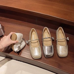 女性用フラットスクエアトゥビーニーシューズ、新しいバックルシングルシューズ、ファッショナブルなソフトソールワンステップフラットソールアウターシングルシューズ、女性用