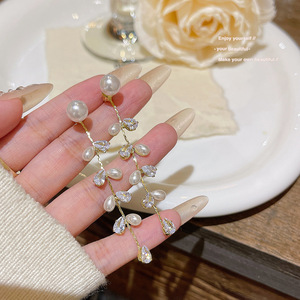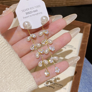 ジルコン小麦耳長気質タッセルイヤリングライト高級ハイエンド新しいツーウェアイヤリングファッションパールイヤリング女性用