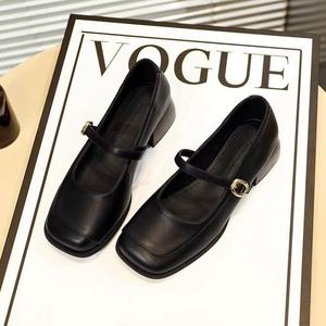 太いヒールの小さな革靴レトロスタイルスクエアトゥストラップメリージェーンシューズ女性のための 2025 夏の新しいフランスの女性の靴