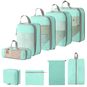 レイクブルーの10点セット[メッシュ5点セット+巾着ポケット+シューズバッグ+アメニティバッグ+フラットポケット+デジタルバッグ]無料ラベル付け可能
