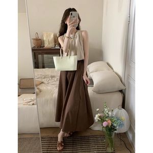 夏のドーパミンウェア、茶系小柄ソルト系軽熟ワンピース、女性用小香風スーツのセット