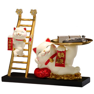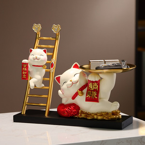 招财猫钥匙收纳玄关摆件轻奢高级家居入户客厅酒柜乔迁新居装饰品