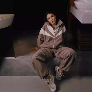 ヨーロッパとアメリカのゆったりとしたカジュアルな女性のファッションコントラストカラー長袖スポーツカーディガンズボンツーピースセット女性のズボンスーツ女性