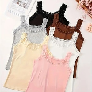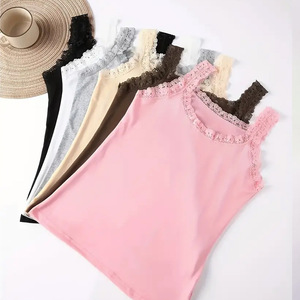 ヨーロッパとアメリカのクロスボーダー大きいサイズのレースベストサスペンダーレディースアウターウェアスリムボトムシャツノースリーブトップTEMU供給下着