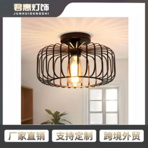 クロスボーダーアメリカンシンプルな屋内シーリングランプリビングルームメインライトレトロ鳥かごアイアンティーハウスティールーム中山照明