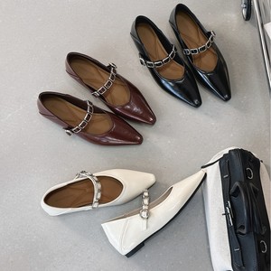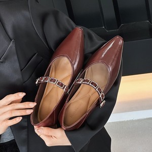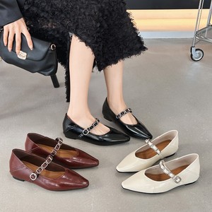 Binli 25 秋と夏の新しいフラットポインテッドトゥシルバーメリージェーンシューズ女性のフレンチスタイルイブニングシューズ