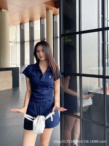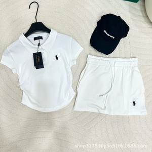 ホットガールカジュアルスポーツスーツ女性の夏スリムポロシャツ半袖スカートツーピースセットポニーマーク