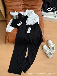 现货正确版25夏季新款Alo字母织带腰部翻边长裤显瘦百搭休闲裤女