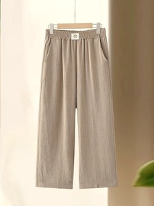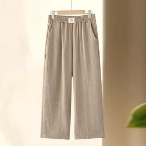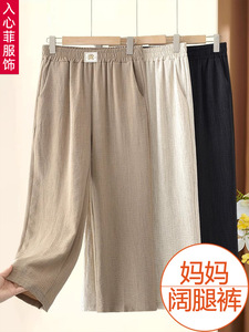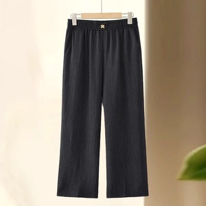中高年女性の9点ワイドパンツ、ゆったりカジュアルパンツ、夏用薄手新作、中年ママストレートアイスシルクパンツ