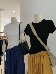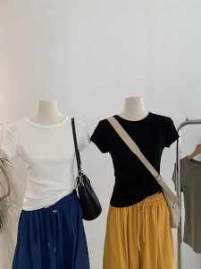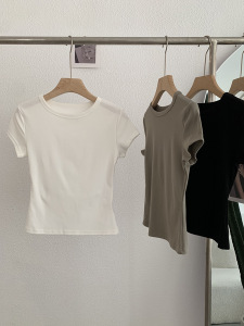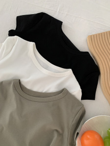 Omalai 2025 夏韓国カジュアル多用途ラウンドネックスリムフィットショート半袖 T シャツトップ 3806