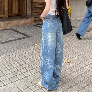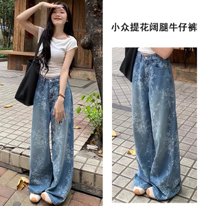 ニッチジャカードワイドレッグジーンズ女性の夏の新しいデザイン外国風ハイウエストカジュアルストレートパンツ