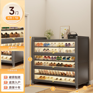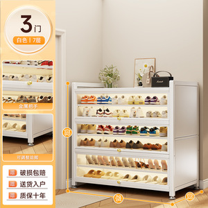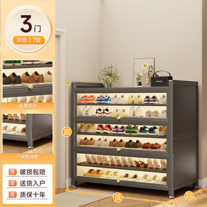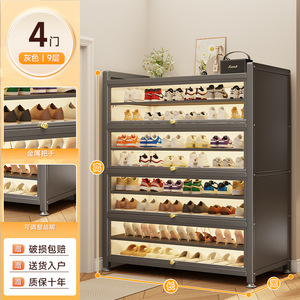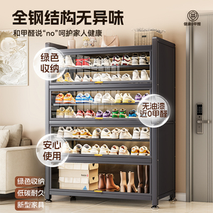 钢制鞋柜玻璃门家用门口多层落地玄关柜大容量入户上翻门防尘鞋架