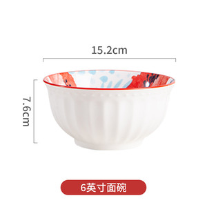 松发瓷器珠点红花双耳碗家用泡面碗小碗汤碗陶瓷餐具碗盘汤盆大碗
