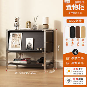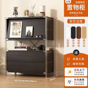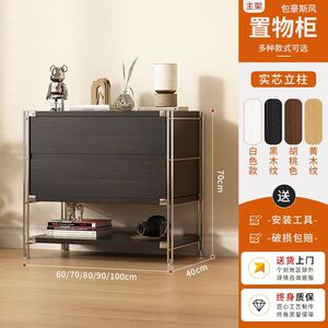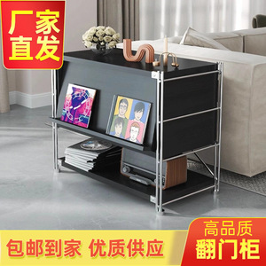 ベッドサイドテーブル、ダブル引き出し、高級感のある黒の跳ね上げ扉キャビネット、おしゃれなネットセレブのリビングルームマガジンキャビネット、床置きのシンプルな収納キャビネット