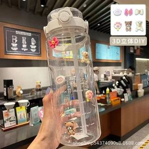 ダブルドリンクカップ、女の子向けの大容量、見栄えの良い夏用プラスチックカップ、高温耐性ウォーターボトル、男性用ケトル