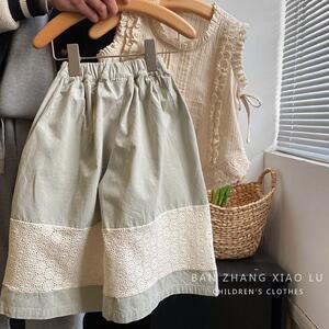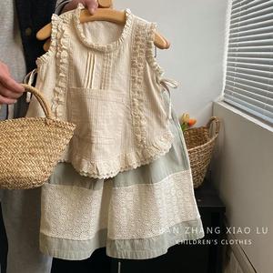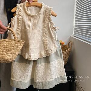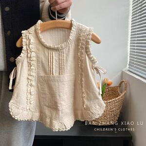 女の子の森刺繍レースベストシャツ韓国風子供服 2024 夏の新スタイルノースリーブ薄手スーツトレンディ