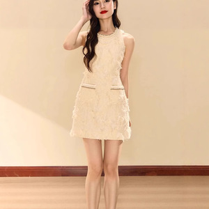 フェザーフレンチスタイルファッションドレス女性のための 2025 新しい夏のヘビーデューティスリムノースリーブ A ラインスカート