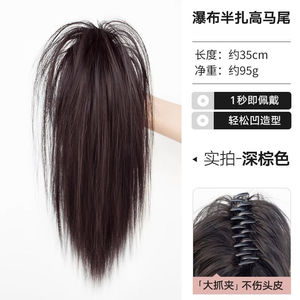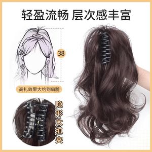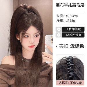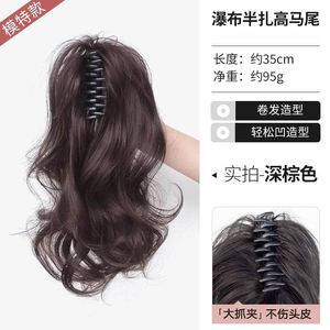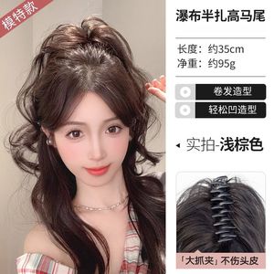 滝のような半分結んだカーリーヘアのハイポニーテールウィッグ、女性用ふわふわ増毛ポニーテール、ホットガールの噴水ロングヘア三つ編みヘアアクセサリー