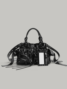 2025 新しいニッチデザインホットガールスタイルリベットオートバイバッグオイルワックスレザーハンドバッグハイエンドシングルショルダークロスボディバッグ
