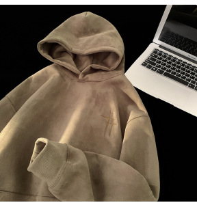スエードスウェットシャツメンズ2024秋冬新作トレンディブランドハンサムアメリカンルーズカップルプラスベルベットフード付きジャケットイン