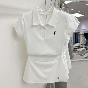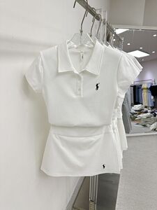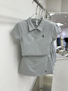 刺繍ポロ襟右肩半袖Tシャツレディース夏新作カジュアルスポーツハイウエスト痩身ショートスカートツーピーススーツ