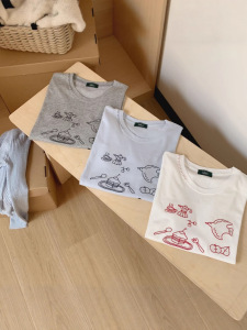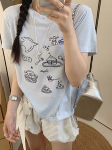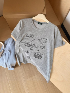 韓国風 8 ミルク柄半袖 Tシャツレディース右肩ラウンドネックトップ 2025 ファッション新スタイル多用途インプリント