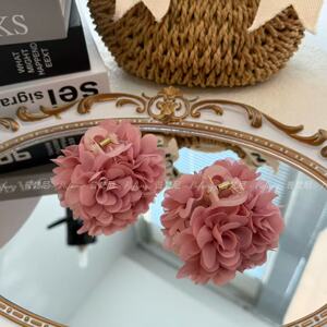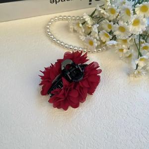 ローズフラワークリップヘアピンフラワーフリンジサイドクリップ7cmフレンチレイジーハーフタイヘアピン