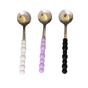 4色パールステンレススプーンセラミックハンドル家庭用洋食スプーン高価値ガーリーハートラウンドスプーン