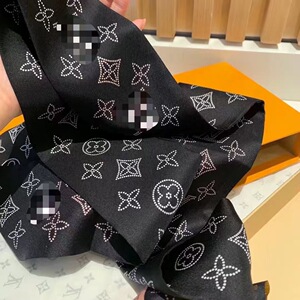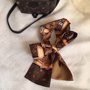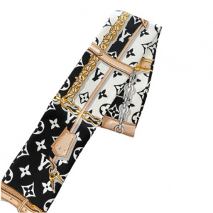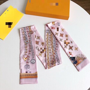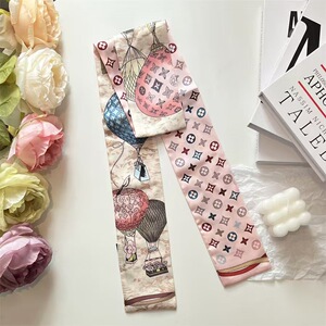 ヨーロッパとアメリカの春夏の黒と白のチェーン小さなシルクスカーフ、バッグハンドルリボン、ヘアバンド、ロングフローティングスカーフ、女性用ヘアバンドル