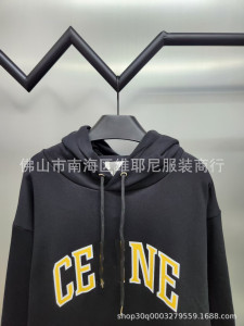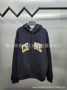 高品质 现货 CE家新款裂纹字母印花连帽卫衣重磅高街宽松简约帽衫