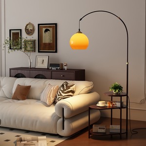 复古落地灯客厅中古沙发边茶几置物架卧室高级感床头柜一体钓鱼灯