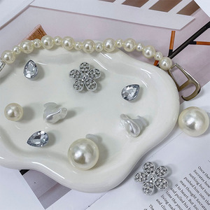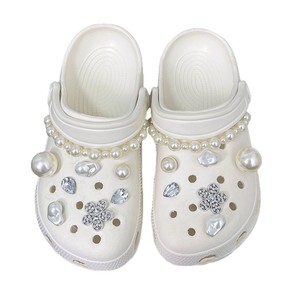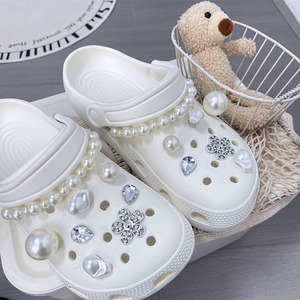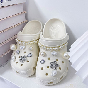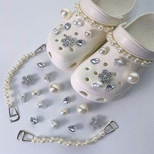 高級パールチェーン下駄、バックル、小さな香り、さまざまなパール、水滴、ダイヤモンド、立体的な取り外し可能な装飾靴の花