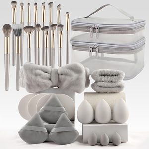グレー植毛パウダーパフ、スーパーソフトメイクアップ三角パウダーパフ、クリスタルショートベルベットメイクアップスポンジ、エアクッションパフの31点セット