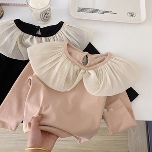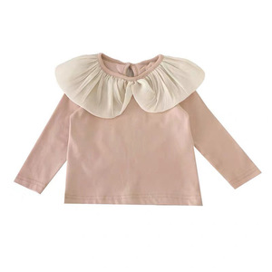 韓国風春秋女児服Tシャツベビーファッショナブルな大きなラペル子供用蓮の葉襟ファッショナブルなネットセレブインスタイルボトリングシャツ