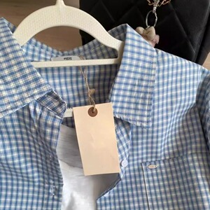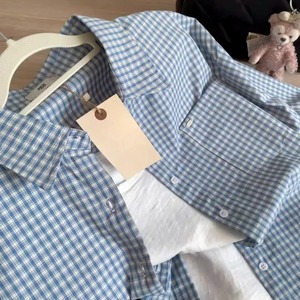 フレンチレトロブルーチェック柄ストライプポロ襟薄い日焼け止めシャツ女性のための春と夏のルーズカジュアルジャケットシャツ