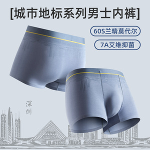 男性下着モーダル通気性ボクサーパンツアーバンスタイルプリントミッドウエストシームレス 7A 抗菌下着男性ハイエンド