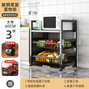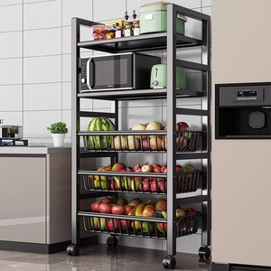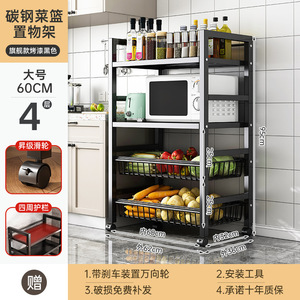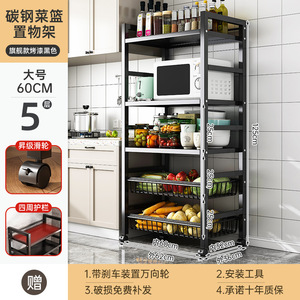 キッチン野菜バスケット収納ラック家庭用床置き多層果物と野菜の収納多機能オーブン電子レンジポット収納ラック