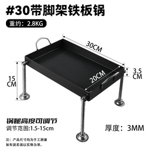 30CM3MM 極厚角型(脚付き)鍋+スパチュラ2本+ブラシ1本